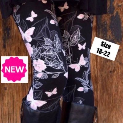 NEW Sizes 18-22 Black Pink Butterfly Leggings Soft Yoga Pant