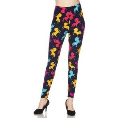 X-Plus Size Womens Colorful Neon Unicorn Print Navy Leggings