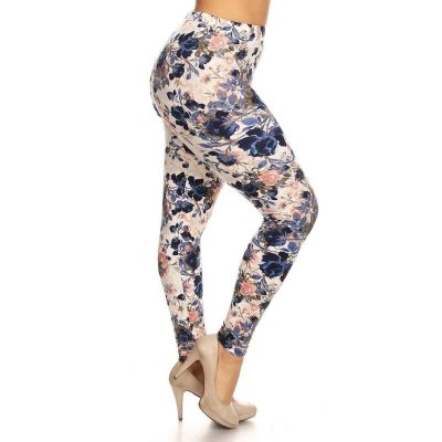 Plus Size Women Floral Printed High Waisted Knit Leggings In