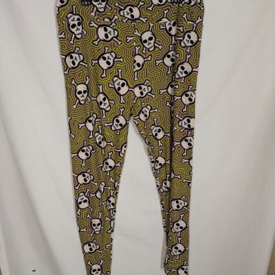 LuLaRoe Green Purple Skull High Rise Leggings Size TC2 20-26