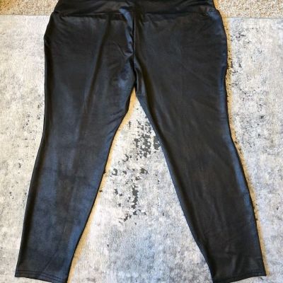Terra & Sky Womens Plus Size Black Faux Leather Legging - Si