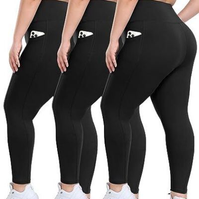 3 Pack Plus Size Leggings with Pockets for 3X-Large 26 inch