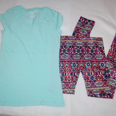 JR Womens BRIGHT STAINED GLASS LEGGINGS Geometric AQUA T-SHI
