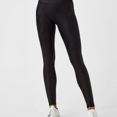 SPANX Moto/Grunge/Retro Women's Faux Leather Black Leggings
