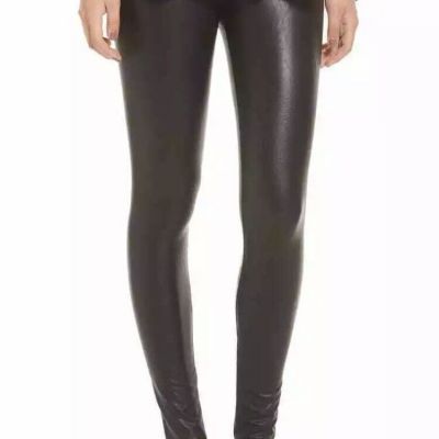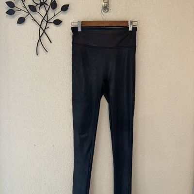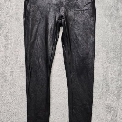 SPANX Legging Womens Large Black Faux Leather Stretch Everyd