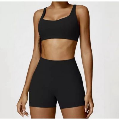 Womens Soft Stretch Cotton yoga workout set. High waisted sh