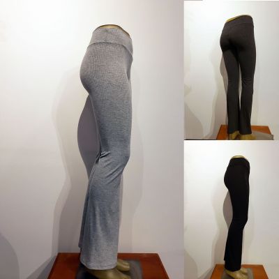 WOMEN COTTON RIBBED FLARE STRETCH WORKOUT ACTIVE YOGA PANTS