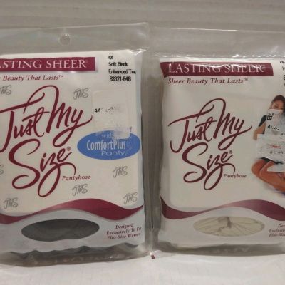 Vintage Just My Size 4X Soft Black Ivory Lot Pantyhose Full/