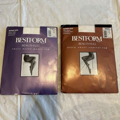 LOT Best Form hose 2 pair Queen Size 2X/3X White Sandal foot