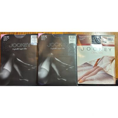 3 Jockey Black Navy Pantyhose Hosiery Control Top SZ M/T Plu