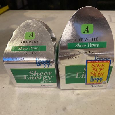 NIB Vintage 1996 L’eggs sheer energy pantyhose off white s