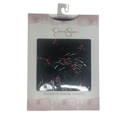 Jessica Simpson Sheer Tights Pantyhose Cherry Print Black Si