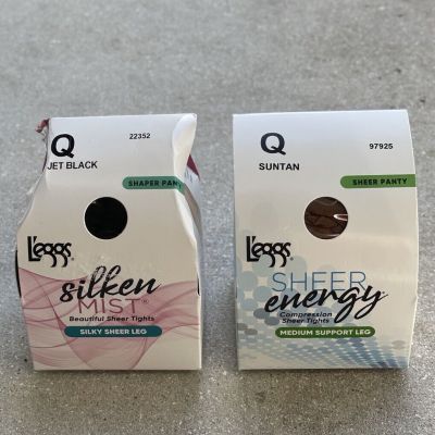 Leggs Q Jet Black Silken Mist Sheer Leg and Q Suntan Sheer E