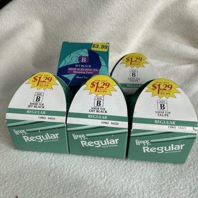 L'eggs Regular Pantyhose 5 Pair Women B Sheer Toe Jet Off Bl