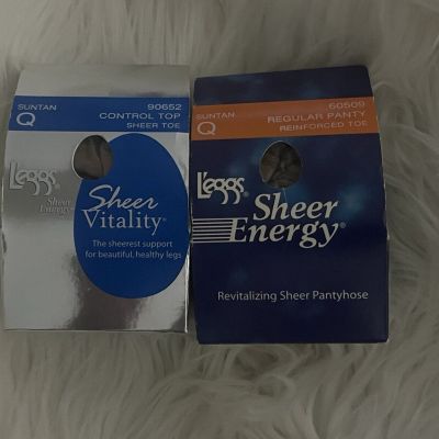 Leggs (L'eggs) Sheer Energy Pantyhose Suntan Size Q Two Pair