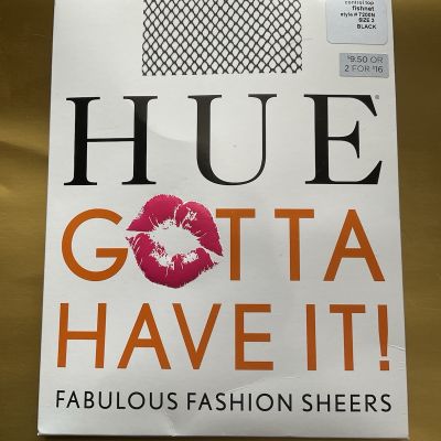 Hue Gotta Have It! Fishnet Black Pantyhose Sz.3 New .