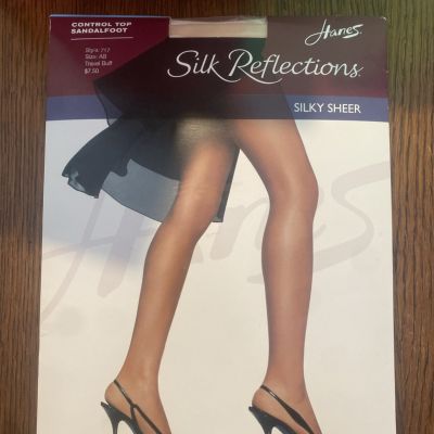 Hanes Silk Reflections Control Top Sandal Foot Pantyhose Bar