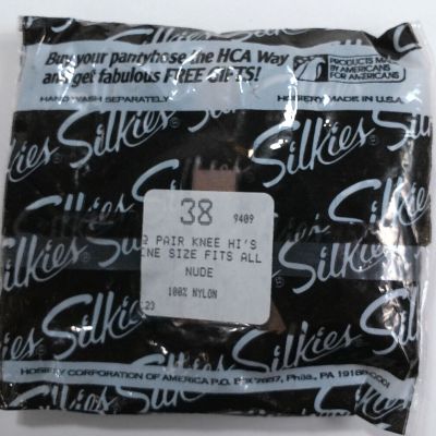 2 PAIR Silkies Knee Hi's One Size Fits All Nude 38 USA Made