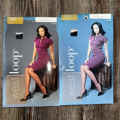 2 Pairs: Westloop Ultra Sheer Control Top Size E Jet Black S