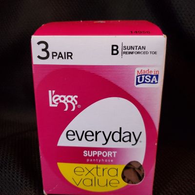 Leggs Pantyhose Everyday Support Suntan B 3 Pair Reinforced