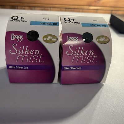 2 L'eggs Pantyhose Silken Mist Ultra Sheer Black Mist Q+ New