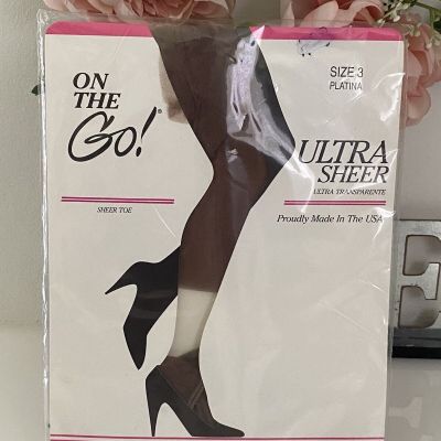 Vintage On the Go Pantyhose Womens Size 3 Platina Ultra Shee