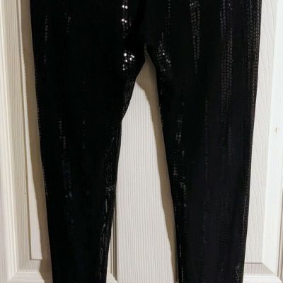 Kikiriki Leggings M Black Sequin Sheer Mesh Stretchy Mid-Ris