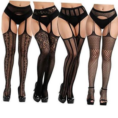 Women Suspender Fishnet Lace Garterbelt Stocking Sexy Breathable Fabric Lingerie