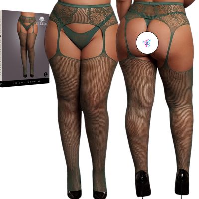 Plus Size Fishnet Stockings With Criss Cross Attached Garter Belt