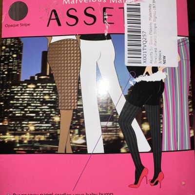 Spanx Marvelous Mama Assets BLACK Maternity Opaque Stripe Tights Sz 3 NEW (187)