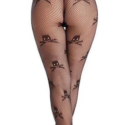 Leg Avenue Pirate Booty Skull Design Net Pantyhose Tights womens 1X/2X Black