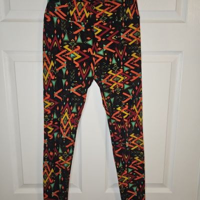 Lularoe Leggings TC - Geometric Black Peach/Orange Blue