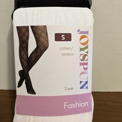 Joyspun 2- pair Women’s S Opaque Pink/Black Tights NWT