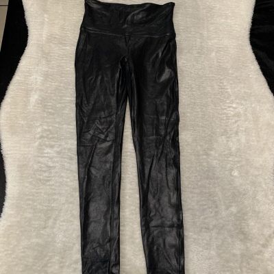 Spanx Faux Leather Leggings Black Shapewear Slimming Stretch Sz S 2437