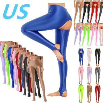 US Women Shiny Glossy Pantyhose High Waisted Pants Yoga Ultra Thin Footed Tights