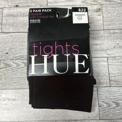 Hue Lot Of 3 Total Opaque Control Top Tights Size 2 Black Gray 90 Denier