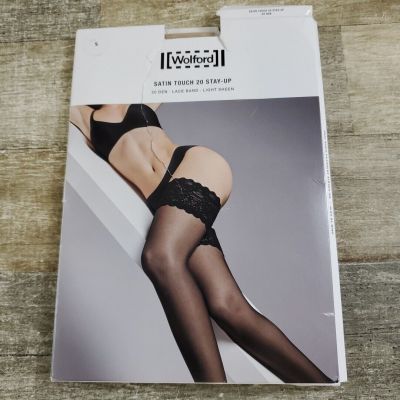 Wonderful Wolford REESE NET Stay Ups Stockings Thigh High BLACK GRAY Large L