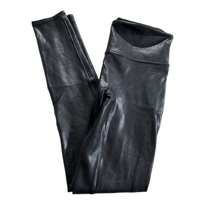 SPANX Faux Leather Leggings Women's S Black Shiny Coated Shaping Pants