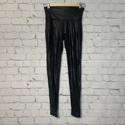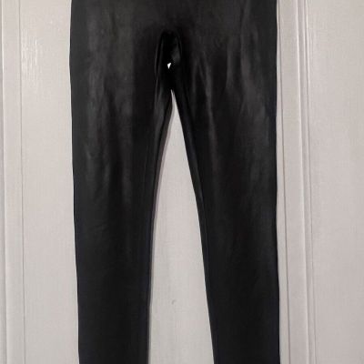 Spanx Womens Faux Leather Leggings Size Large Black Shimmery Shiny Stretch