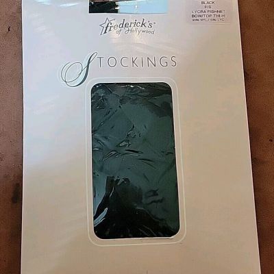 NEW Frederick's Of Hollywood Black Sheer Thigh High Stockings Lace Scallop Top S