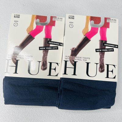 HUE Black Ultimate Opaque Control Top Tights Womens Size 1 New 1 Pair