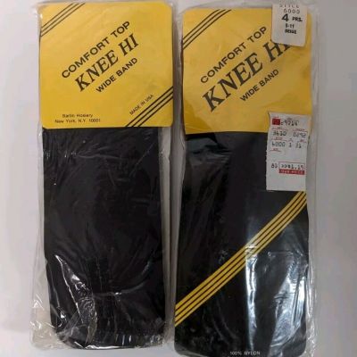 (3 Pairs) Vintage No Nonsense Wide Band Knee Highs BLACK & TAN One Size