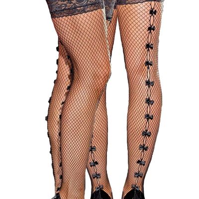 TiaoBug US Women's Mid Waist Fishnet Stockings Crotchless Thigh High Pantyhose