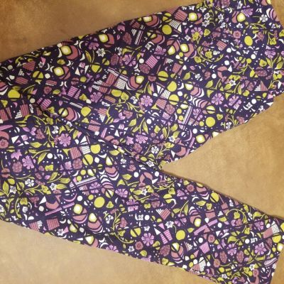 LuLaRoe Leggings OS, Purple/Yellow Floral Geometric, NWT