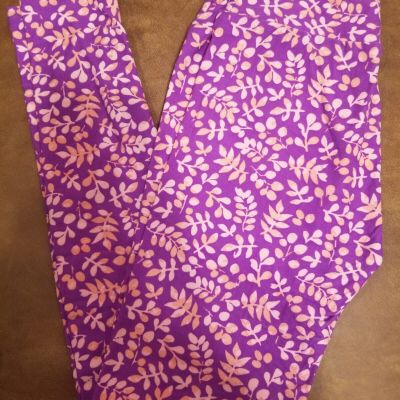 LuLaRoe Leggings OS, Purple/Pink Floral Leaves, NWT