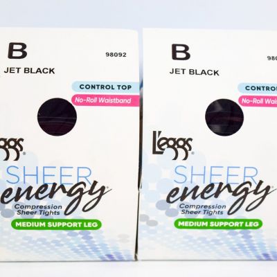 L'eggs Sheer Energy Control Top Jet Black Sheer Tights ~ A Jet Black 95700