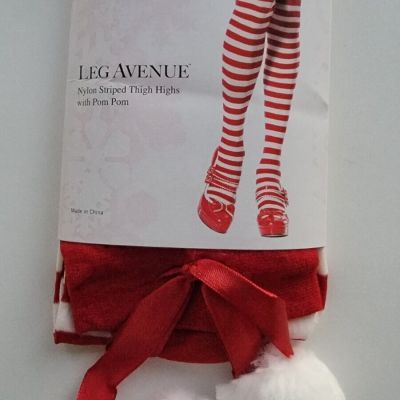 Women's Red & White Striped Thigh High Stockings - One Size #2568