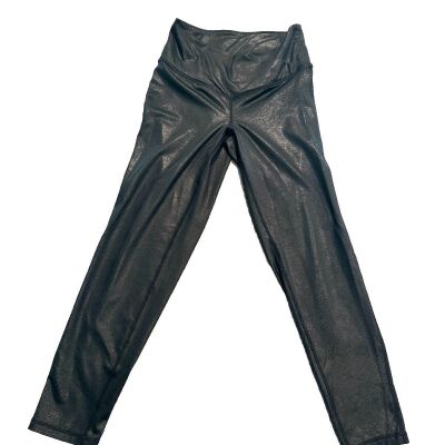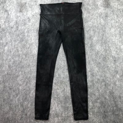 SPANX Black Faux Leather Shiny LEGGINGS Pants Size Medium M Women's Croc