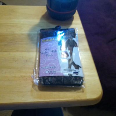Women’s SHEER Pantyhose w/OPAQUE Woven SPIDERWEBS~One Size~BLACK Nylon NWT