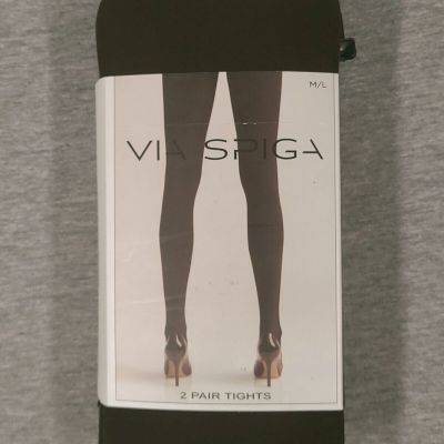 Womens 2 Pair Footless Tights Fleece Lined Solid BLACK Soft & Warm SIZE S-M NWT